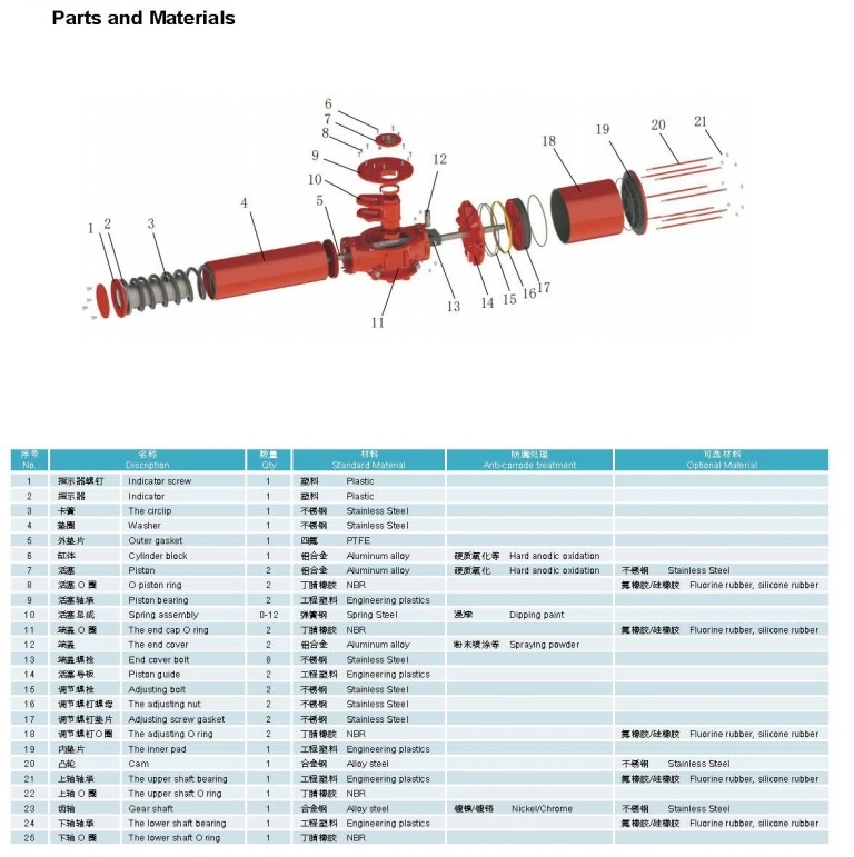 The product features a modular design: the center body offers six sizes, with pneumatic cylinders and spring cartridges attachable to either side, supporting ESD (emergency shut down) applications. A reliable manual override facility (including gear reducer, de-clutch gear box, and hydraulic options) ensures operational flexibility in special situations. Made of high-quality materials such as aluminum alloy, stainless steel, and engineering plastics, it boasts excellent corrosion resistance and wear resistance, withstanding harsh environments like high temperature (-15℃ to +150℃) and low temperature (-40℃ to +80℃). Fully compliant with ISO 5211 and NAMUR standards, the pinion and mounting flange ensure strong compatibility with global industrial equipment.