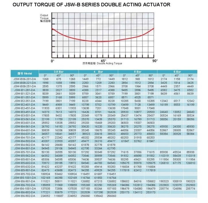 JSW scotch yoke pneumatic actuator is a high-performance industrial actuating device designed for 90-degree rotating mechanisms such as ball valves, butterfly valves, and plug valves. It adopts a unique scotch yoke structure, which delivers exceptional torque output—double-acting models can reach over 240,000 N.m, while spring-return models exceed 110,000 N.m, making it ideal for high-load industrial scenarios.