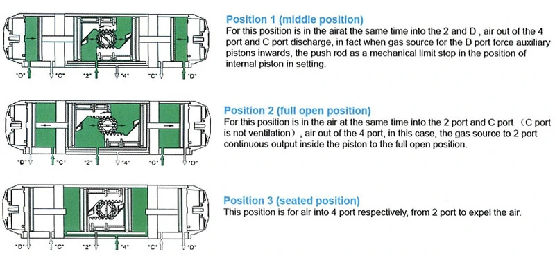2. Precise Positioning: Mechanical limiting of auxiliary pistons ensures stable midway position, with ±5° calibration for full open/close positions, high control accuracy.